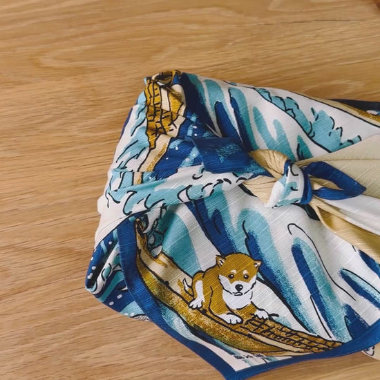 Shiba & The Great Wave Furoshiki, 50cm x 50cm