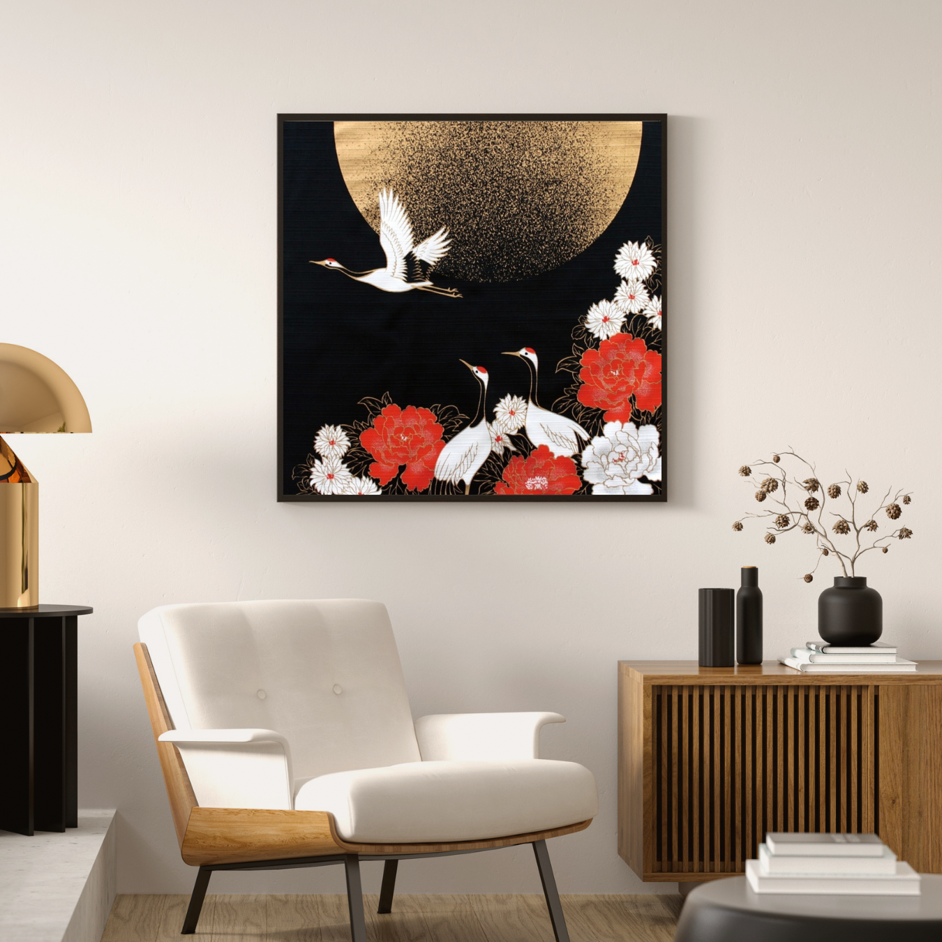 Crane and moon, Furoshiki Gift Wrapping, 50 x 50cm
