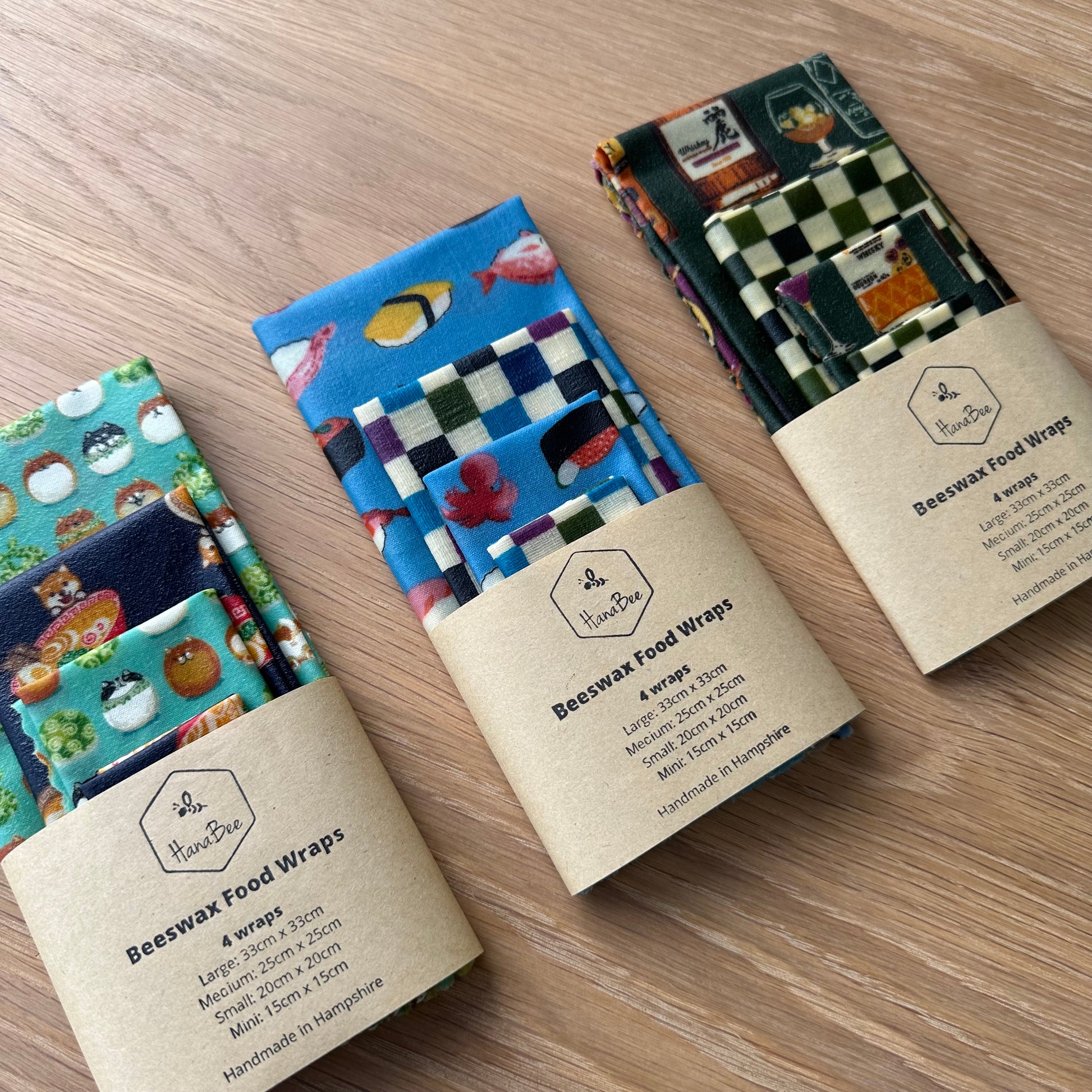 Each HanaBee beeswax wrap set comes in 4 different sizes. See more in Sizes and inspiration.
