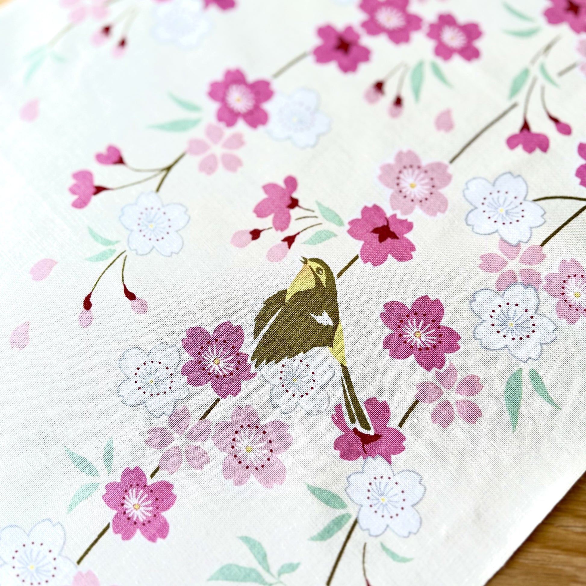 Tenugui Art, Japanese Nightingale and Cherry Blossoms, 34cm x 90cm(13.4” x 35.4”)