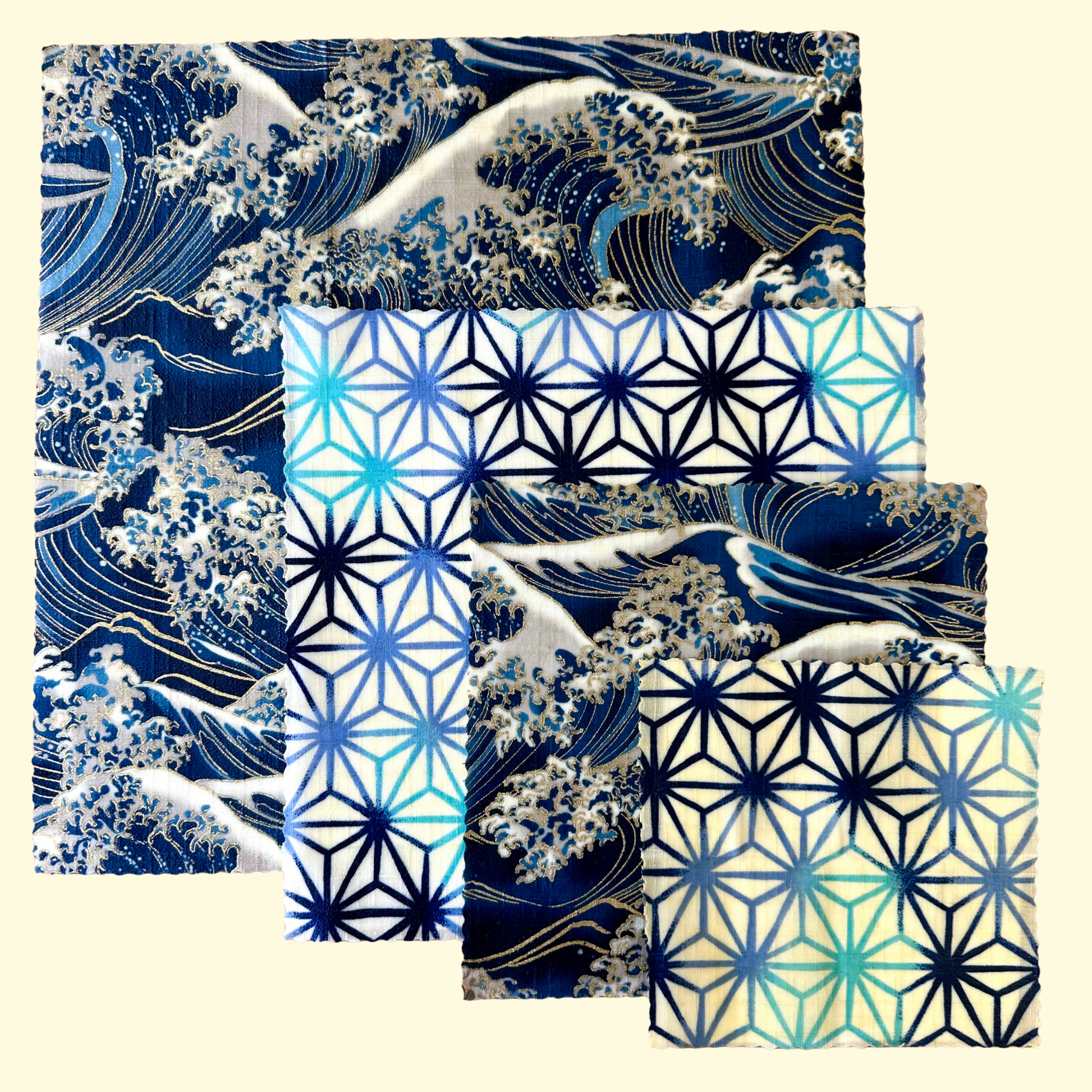 Wave with gold, Set of 4 Beeswax Food Wraps